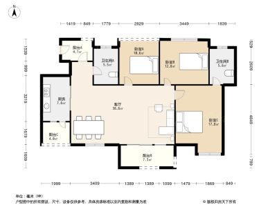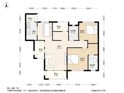 98万 106.62㎡ 3室1厅 东南
