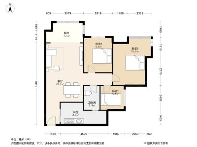 75万 89.45㎡ 3室2厅 南北
