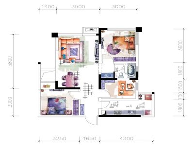 正成金楠尚府2室1厅东北