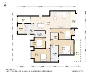 159万 164.09㎡ 4室2厅 东南