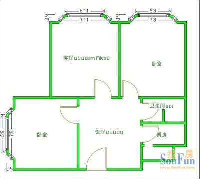 户型齐全,主打明卫,明厨,客厅朝南,双阳台三居