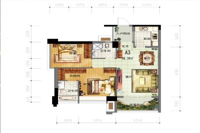 户型齐全,主打户型方正,明卫,明厨,双阳台三居