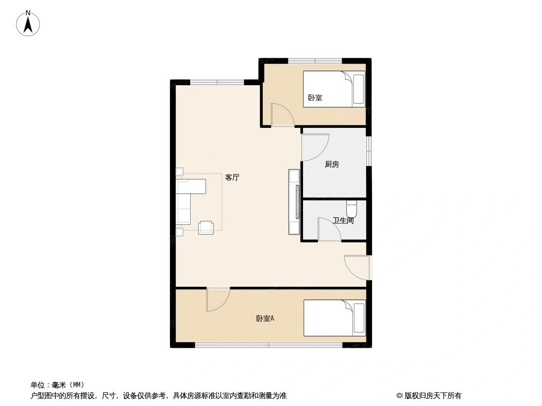 户型齐全,主打明厨,客厅朝南,主卧朝南二居