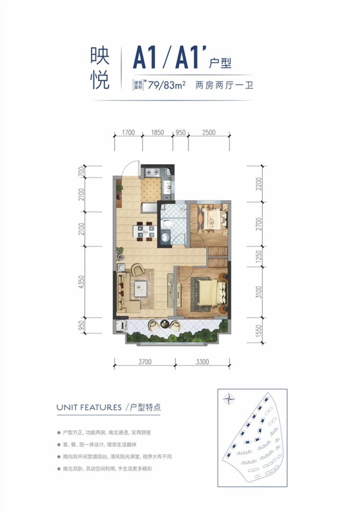 户型齐全,主打户型方正,卧室朝南三居