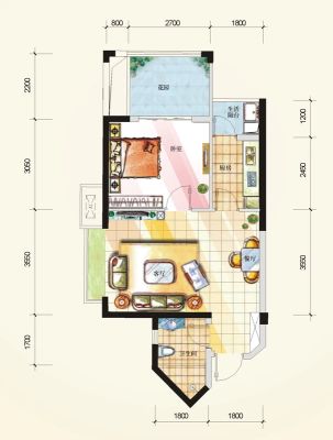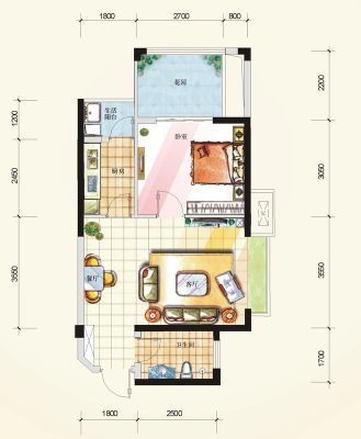 户型齐全,主打户型方正,明卫,客厅朝南,双阳台一居