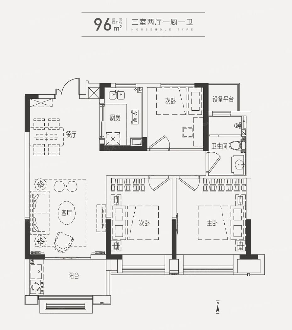 中铁五号院户型主要有96平-113平的南北通透,客厅朝南的三居 、129平-175平的南北通透,全明格局的四居 。