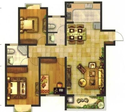 户型齐全,主打户型方正,明卫,明厨,客厅朝南,主卧朝南三居