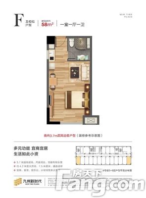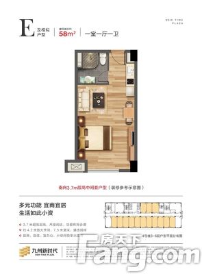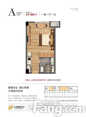 九州新时代户型主要有51平-58平的户型方正,开放厨房的一居 、43平-49平的户型方正,开放厨房的二居 。