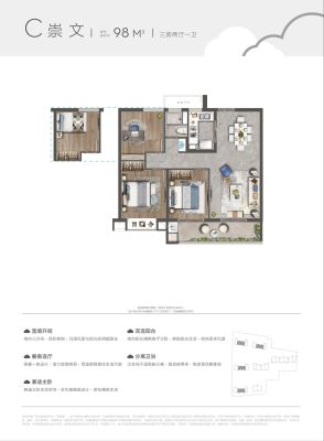 云望里户型主要有130平-139平的全明格局,户型方正的四居 、98平-110平的全明格局,户型方正的三居 。
