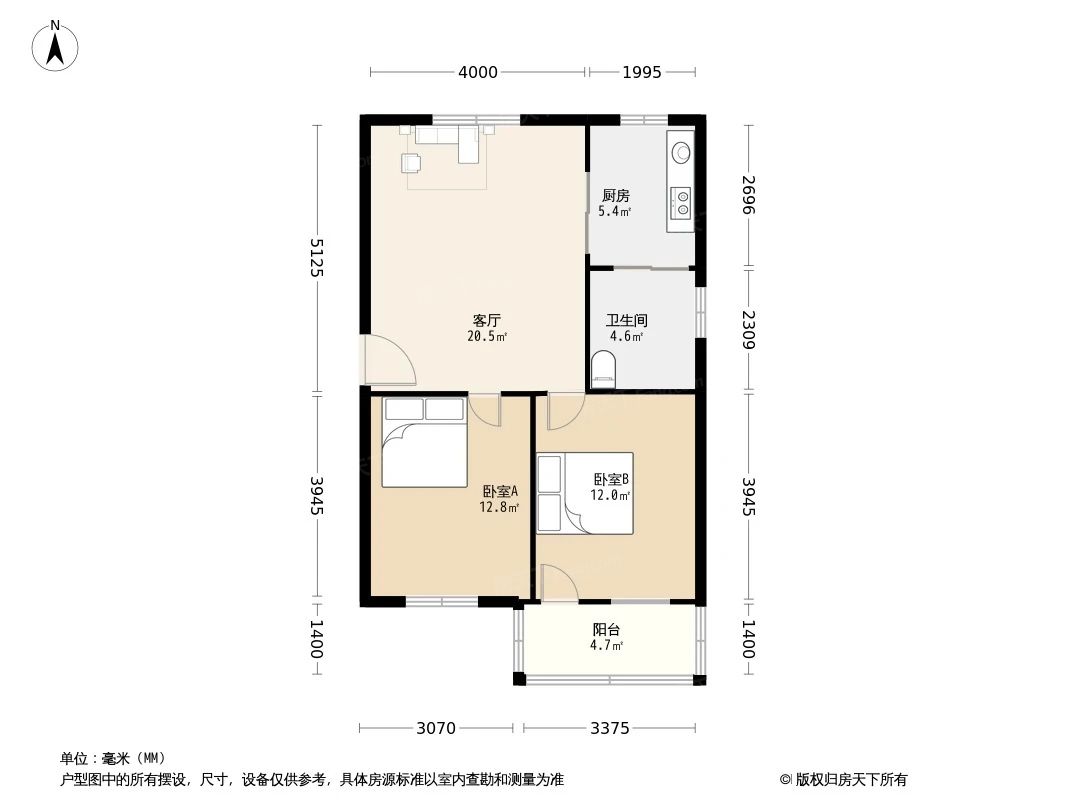 户型齐全,主打户型方正,明厨,明卫,客厅朝南,主卧朝南二居