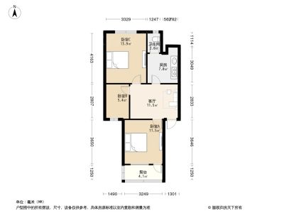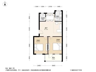 38.8万 65.59㎡ 2室1厅 南北