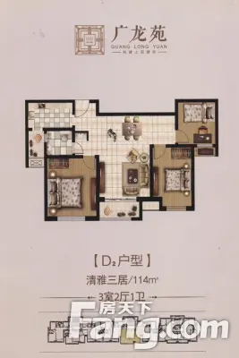 广龙苑3室2厅2卫南北朝向120.00万元出售