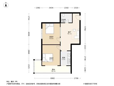 88万 69.59㎡ 2室1厅 南