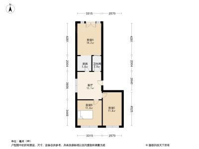 39万 54.5㎡ 2室1厅 南北