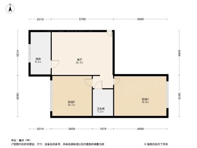 56.8万 67.76㎡ 2室1厅 东西
