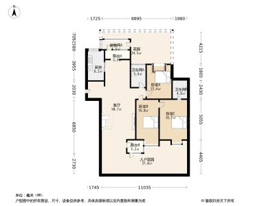 109万 136.6㎡ 3室2厅 南北