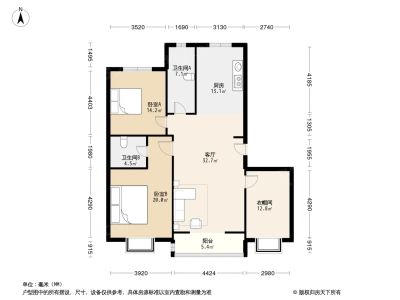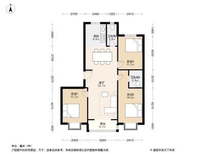 104万 138.38㎡ 3室2厅 南北