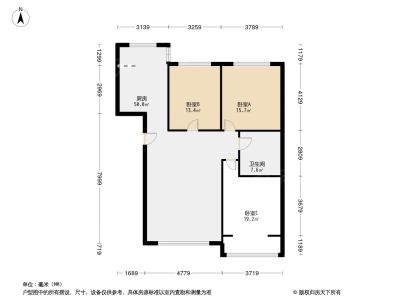82万 94.9㎡ 2室1厅 南北
