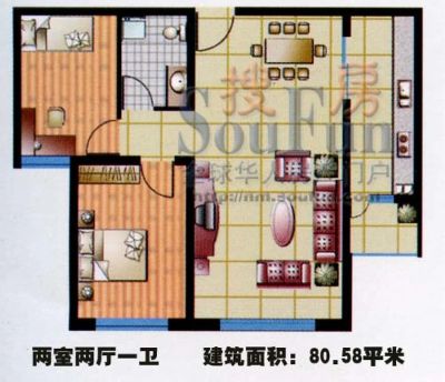 58万 88.22㎡ 2室1厅 南北