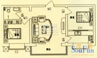 45万 56.03㎡ 2室1厅 南北
