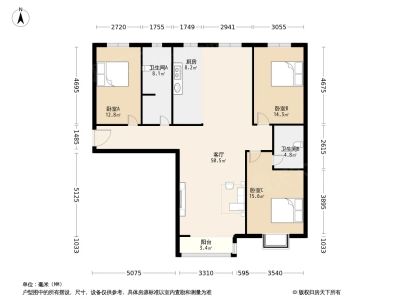 115万 135.4㎡ 3室1厅 南北