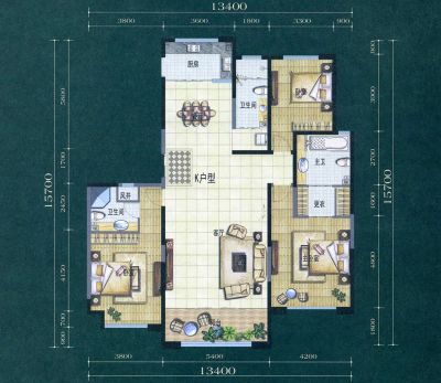 165万 146.25㎡ 3室2厅 南北