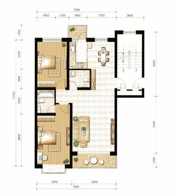 83万 90㎡ 2室1厅 南北