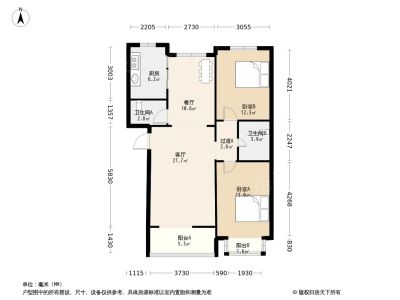 53万 88.63㎡ 2室2厅 南北
