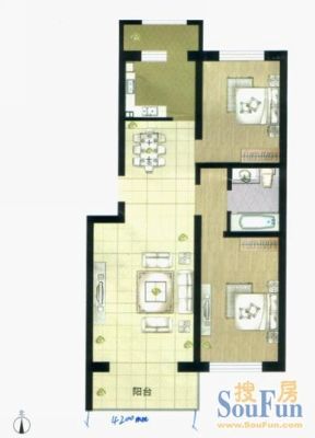 56万 90.77㎡ 2室1厅 南