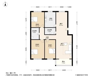 115万 117.9㎡ 3室2厅 南北