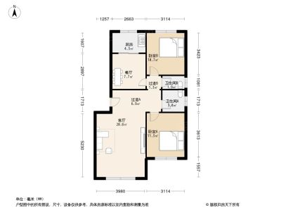 33万 66.77㎡ 2室1厅 东西