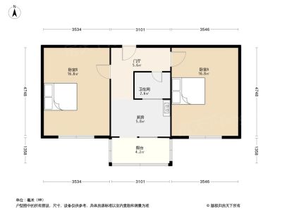 42万 57.9㎡ 2室1厅 南北