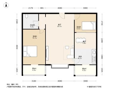 43万 88.5㎡ 2室1厅 南北