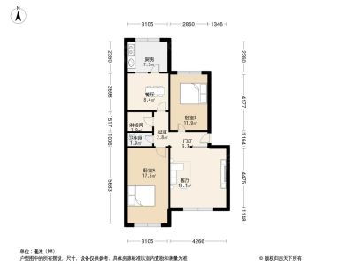 82万 109.65㎡ 3室2厅 南北