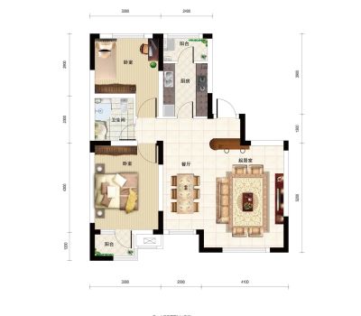80万 97.84㎡ 2室2厅 南