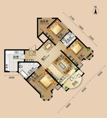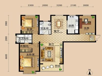 108万 136.41㎡ 3室2厅 南北
