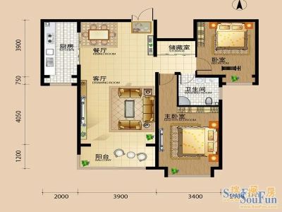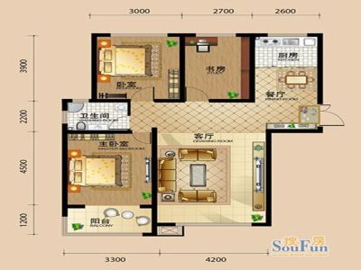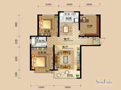 90万 117.83㎡ 3室2厅 南北