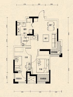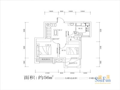 59万 88㎡ 2室1厅 东南北