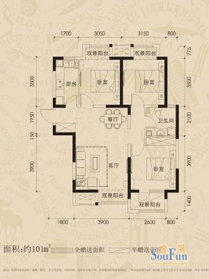 65万 101㎡ 3室2厅 南北