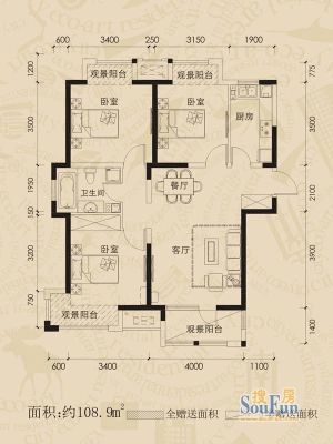 60万 91.81㎡ 3室2厅 南