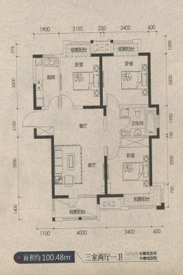 61万 100.3㎡ 3室1厅 南北