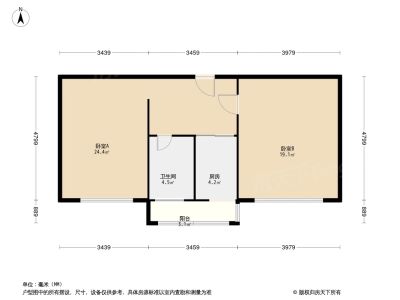 98万 62.4㎡ 2室1厅 南北