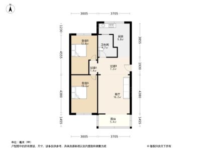 80万 61.84㎡ 2室1厅 南北