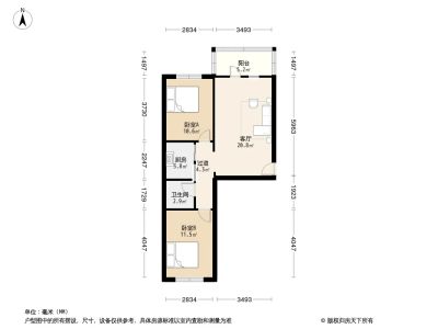 28万 66.16㎡ 2室1厅 南北