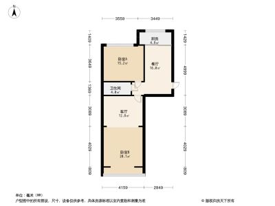 77万 76.54㎡ 2室1厅 南北