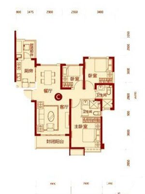 恒大名都3室1厅南北