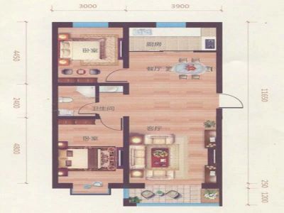 44万 106.7㎡ 2室2厅 南北