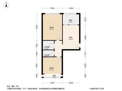 66万 74.55㎡ 2室2厅 南北