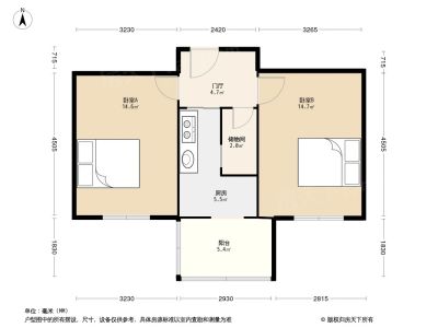36万 53.85㎡ 2室1厅 南北