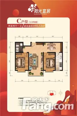 阳光宜居户型主要有85平-104平的全明格局,采光充足的二居 、121平-121平的全明格局,户型方正的三居 。